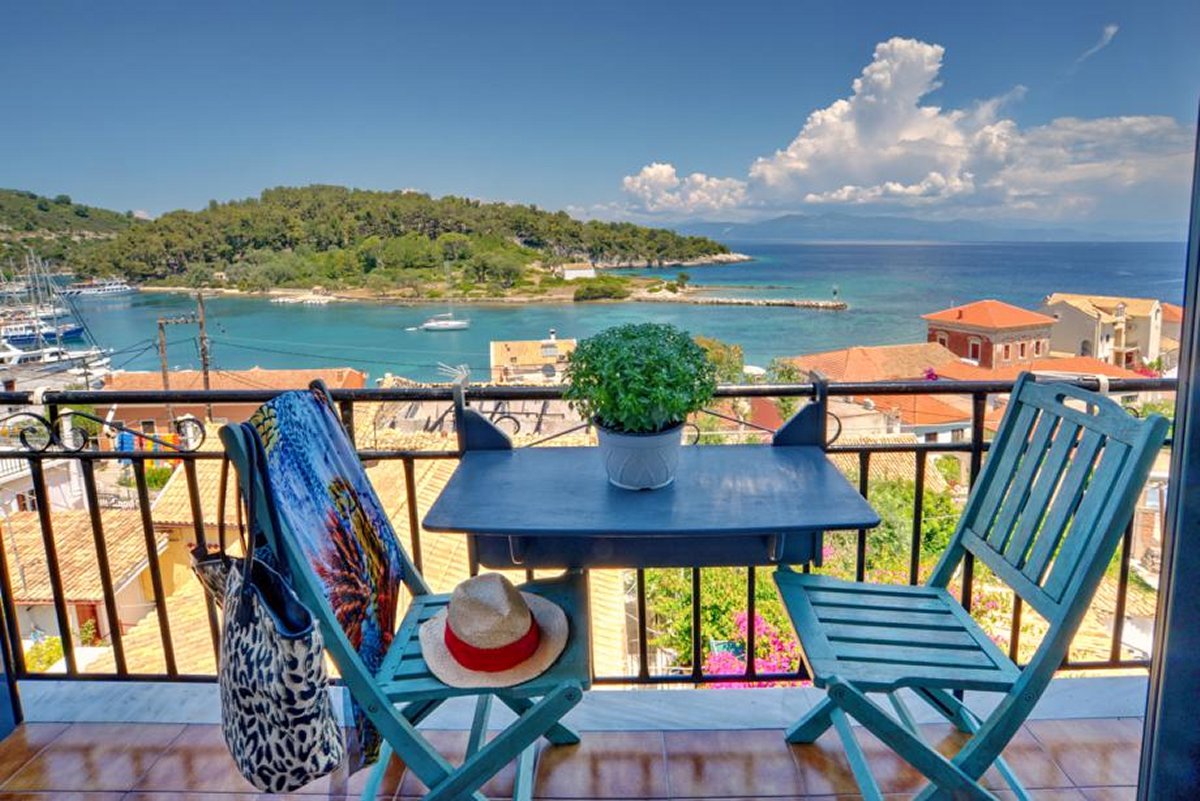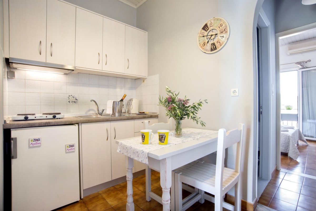 Studio for 2 persons with kitchen / dining area, bathroom with shower and private balcony with amazing views to the open sea and the town.
